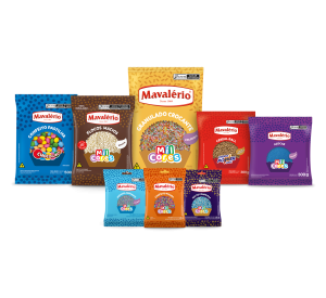 Coberturas, recheios, chocolates, granulados, flocos, confeitos, drageados, misturas em pó, bases, açúcares coloridos, aromas e guloseimas