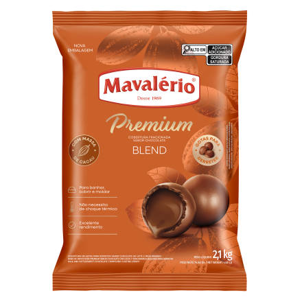 COBERTURA PREMIUM EM GOTAS PARA DERRETER SABOR CHOCOLATE AO LEITE E MEIO AMARGO “BLEND” MAVALÉRIO