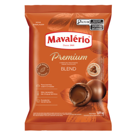 COBERTURA PREMIUM EM GOTAS PARA DERRETER SABOR CHOCOLATE AO LEITE E MEIO AMARGO “BLEND” MAVALÉRIO