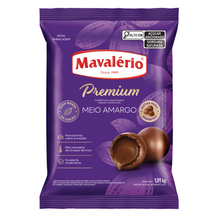COBERTURA PREMIUM EM GOTAS PARA DERRETER SABOR CHOCOLATE MEIO AMARGO MAVALÉRIO