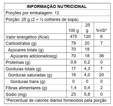 • Não derrete em contato com a umidade, ideal para sobremesas geladas.