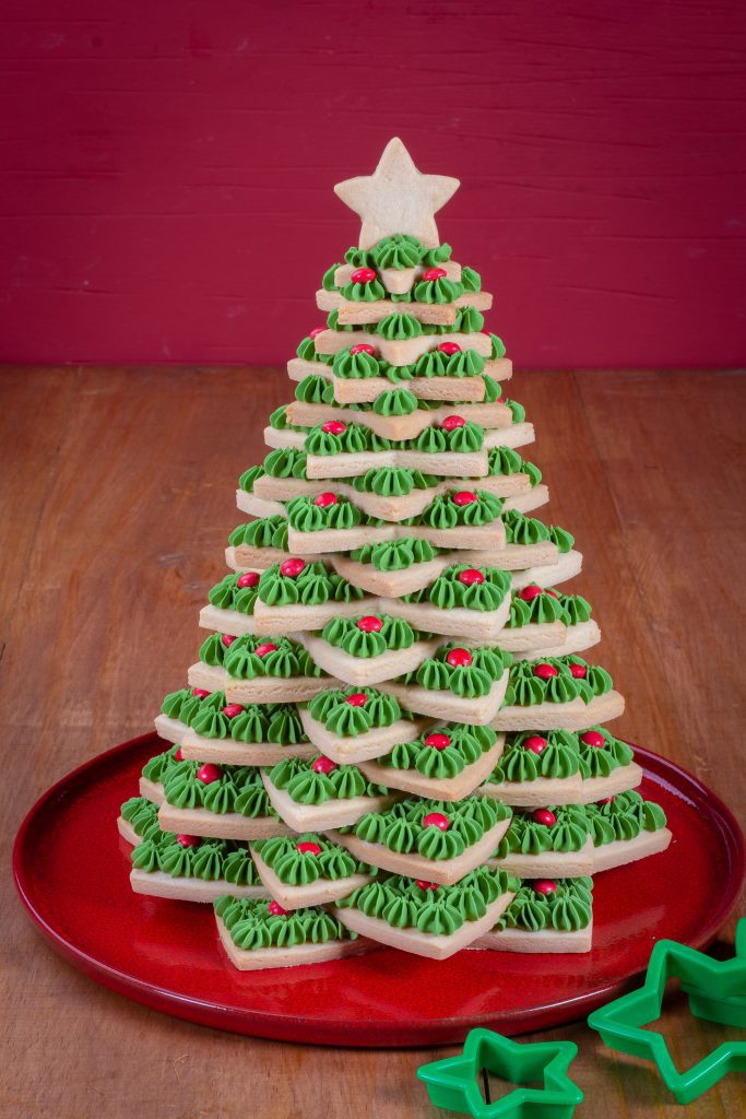 Massa: Em um recipiente, misture muito bem a margarina sem sal, o Açúcar de Confeiteiro, os ovos e o Aroma de Morango. Por último, acrescente a farinha de trigo, mexa, coloque a massa em um saquinho e leve à geladeira por 30 minutos. Em seguida, com o auxílio de um rolo, abra a massa entre dois plásticos, e corte com o kit de cortadores de biscoito, árvore de natal 2 unidades de cada tamanho. Coloque as estrelas em uma assadeira baixa, forrada com papel-manteiga e leve para assar em forno preaquecido a 180°C por aproximadamente 20 minutos ou até começar a dourar.