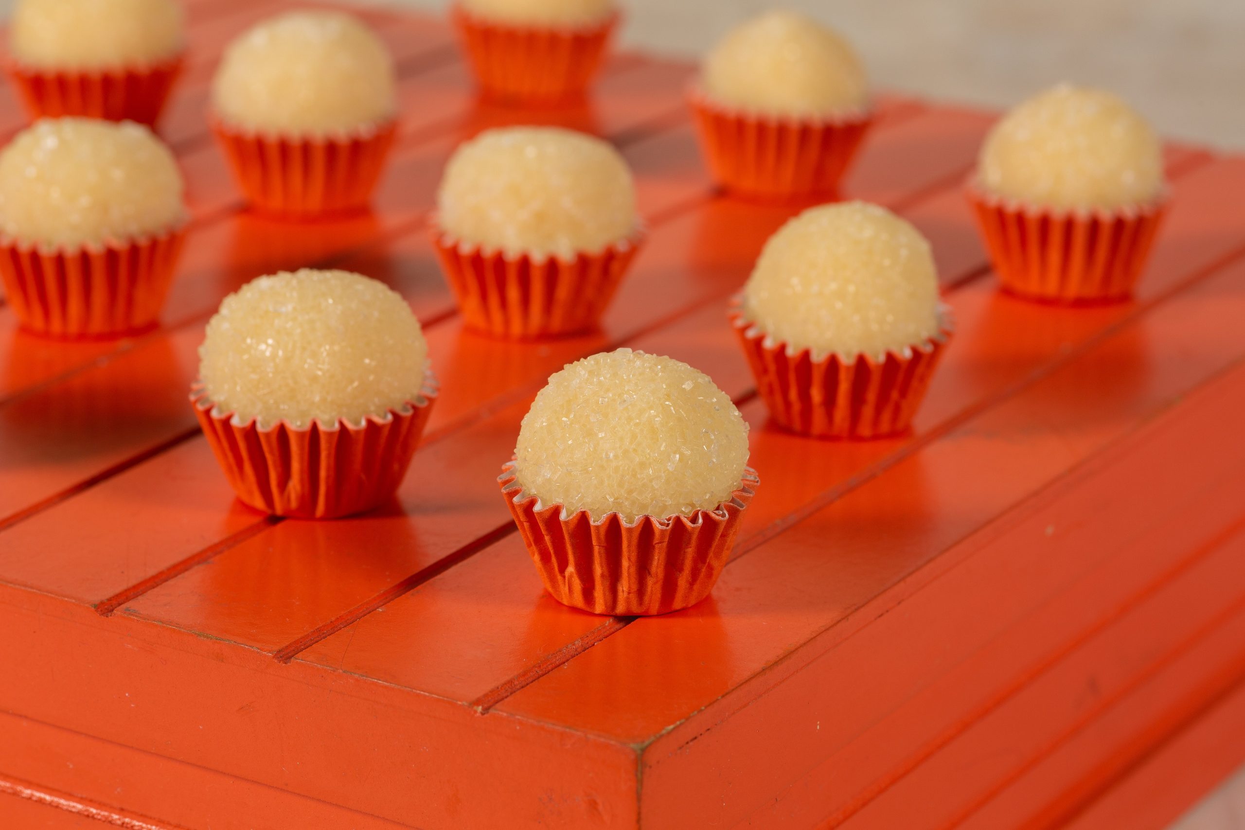 Em uma panela, coloque o leite condensado, o coco seco médio, o creme de leite e a Cobertura Branca. Leve ao fogo mexendo sempre até ficar no ponto de enrolar. Depois de frio enrole e passe no Açúcar Branco.