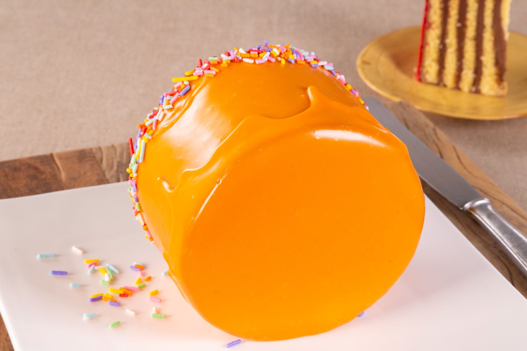Desenforme a massa do rocambole, corte ao meio na horizontal, passe o recheio trufado nas duas partes. Enrole um e, em seguida, emende a segunda parte, enrole, envolva em um papel-manteiga e leve à geladeira até ficar firme. Em seguida, retire o papel-manteiga, espalhe o chantilly batido, alise bem e espalhe a cobertura. Deixe escorrer bem, decore a base do bolo com o Granulado Colorido e coloque ele de lado no prato como se estivesse tombado.