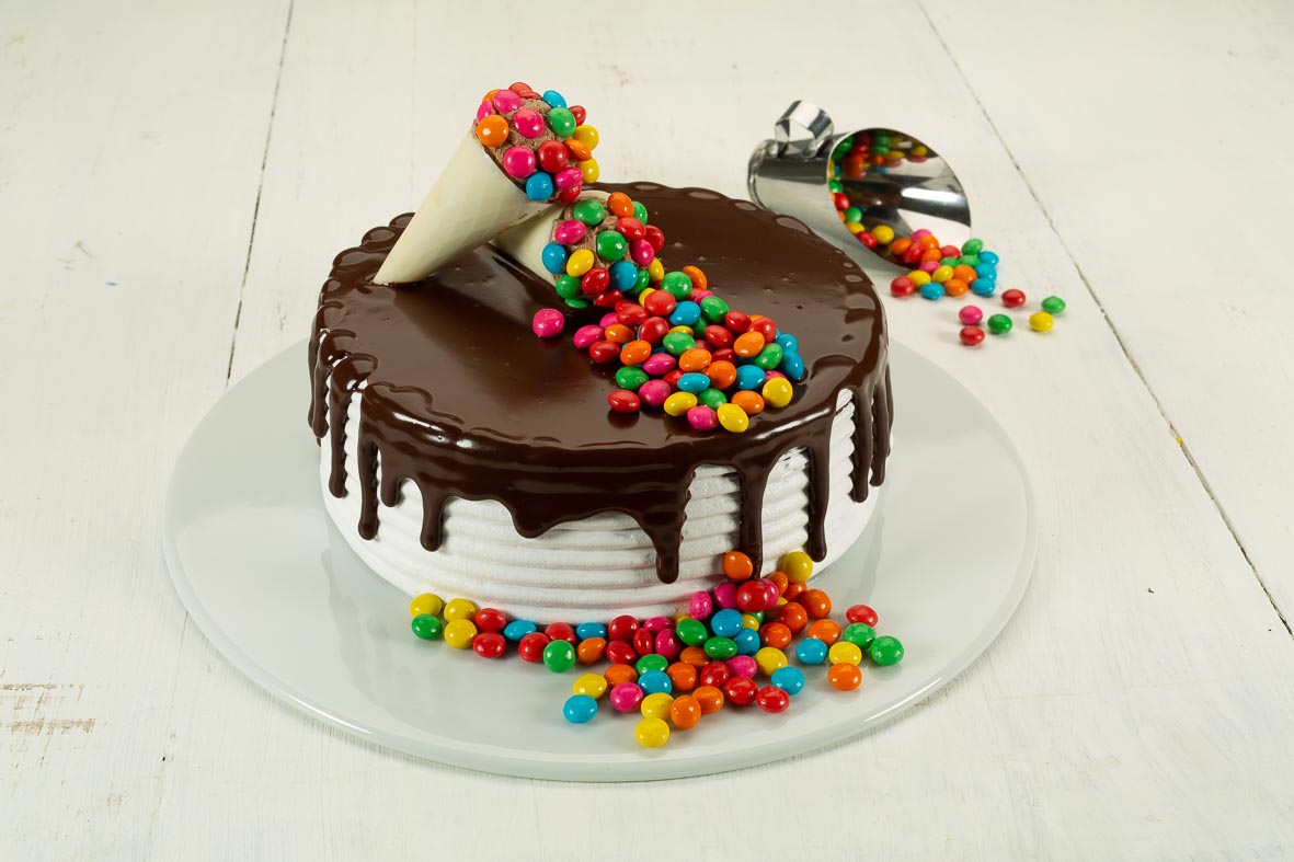 Em um recipiente, derreta a Cobertura Branca em banho-maria ou micro-ondas, coloque a Cobertura derretida na forminha de silicone no formato de cone seguindo as instruções do fabricante. Leve à geladeira até ficar opaca. Retire e reserve. Corte o bolo em três partes, coloque um plástico em uma assadeira e intercale camadas da massa do bolo, calda e recheio, finalizando com a calda. Coloque o bolo em um prato, alise o bolo com o chantilly batido e passe o Triângulo para decorar. Espalhe a cobertura sobre o bolo deixando cair nas laterais. Recheie os cones com o restante do recheio do bolo. Coloque os cones recheados sobre o bolo e finalize com Chocogiros.
