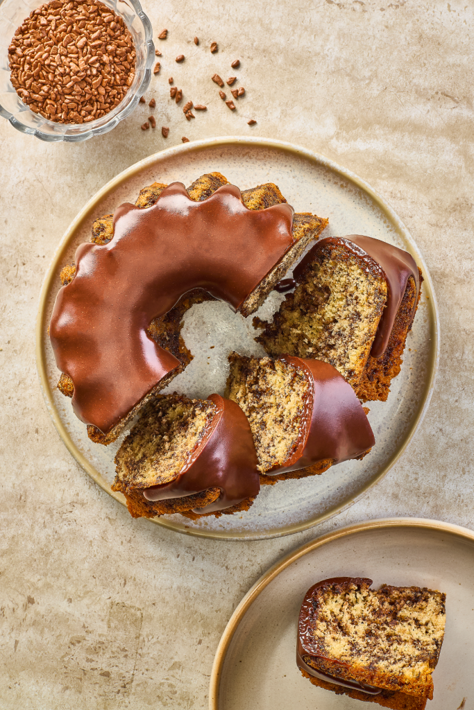Ganache: Em um recipiente, coloque a Cobertura e o creme de leite e leve ao micro-ondas, vá mexendo até derreter totalmente a Cobertura (com intervalos de 30 em 30 segundos). Retire do micro-ondas e decore o bolo com a ganache.