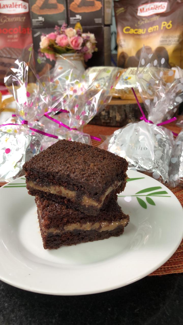 Massa: Bata na batedeira, as claras em neve e adicione o açúcar refinado com a batedeira ainda ligada. Reserve. Em um recipiente, misture as gemas com o leite e a Aroma de Baunilha e adicione à mistura da batedeira. Peneire a farinha de trigo, o Cacau em Pó, o Fermento em Pó, o bicarbonato de sódio e misture delicadamente até que tudo esteja incorporado. Despeje a massa em uma assadeira quadrada de 15 x 20 cm untada e enfarinhada. Em seguida, leve para assar em forno preaquecido a 180 °C por aproximadamente 20 minutos.