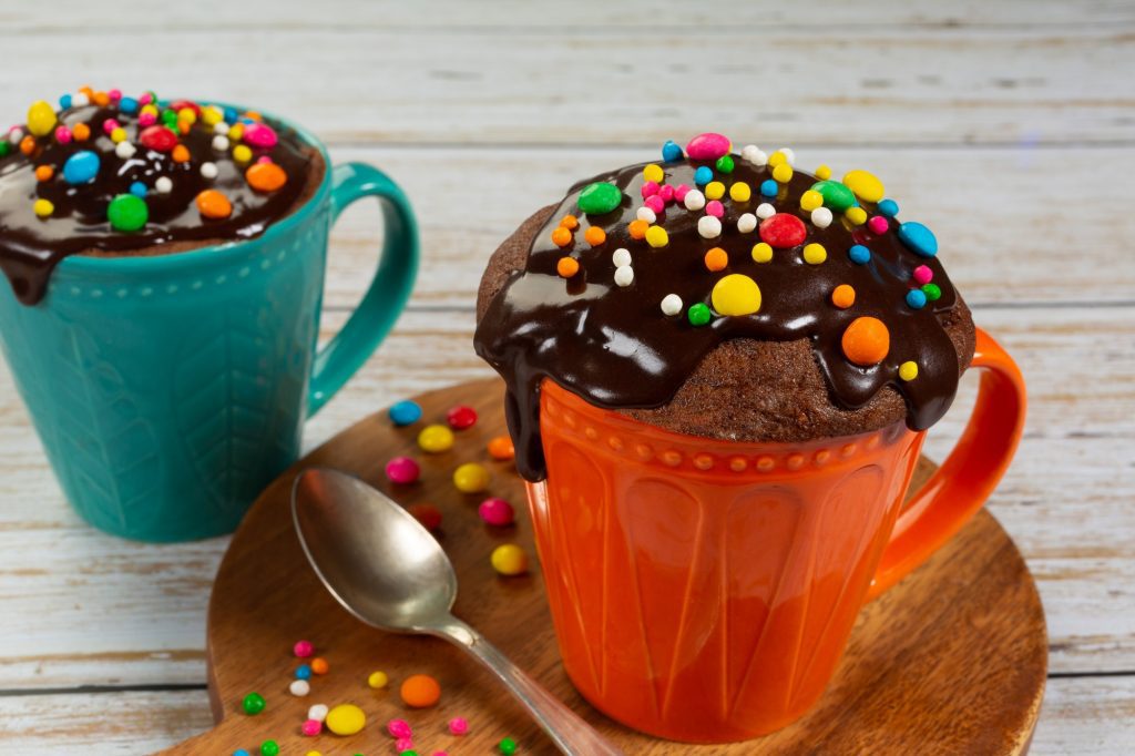 Massa: Em um recipiente, coloque o ovo, o óleo, o leite e o açúcar refinado, misture muito bem. Em seguida, acrescente o Cacau em Pó, a farinha de trigo, o Fermento em Pó e mexa. Por último, coloque as Gotas de Chocolate, misture, coloque a massa em canecas de sua preferência e leve ao micro-ondas por aproximadamente 2 minutos.