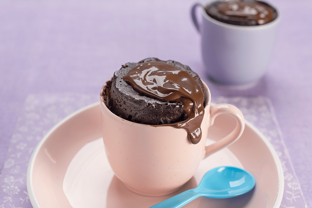 Massa: Em um recipiente, coloque a farinha de trigo, o açúcar, o Chocolate em pó, o ovo, o leite e o óleo, misture muito bem. Coloque a massa em uma caneca alta e leve para o micro-ondas de 30 em 30 segundos até que esteja no ponto.