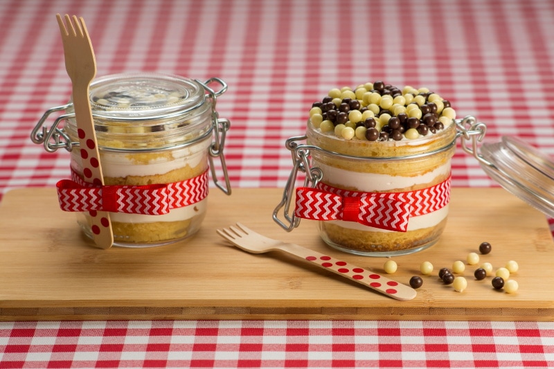Em um pote de vidro ou plástico intercale fatias finas de pão de ló com o recheio aerado de limão. Finalize com o Choco Power Ball.
