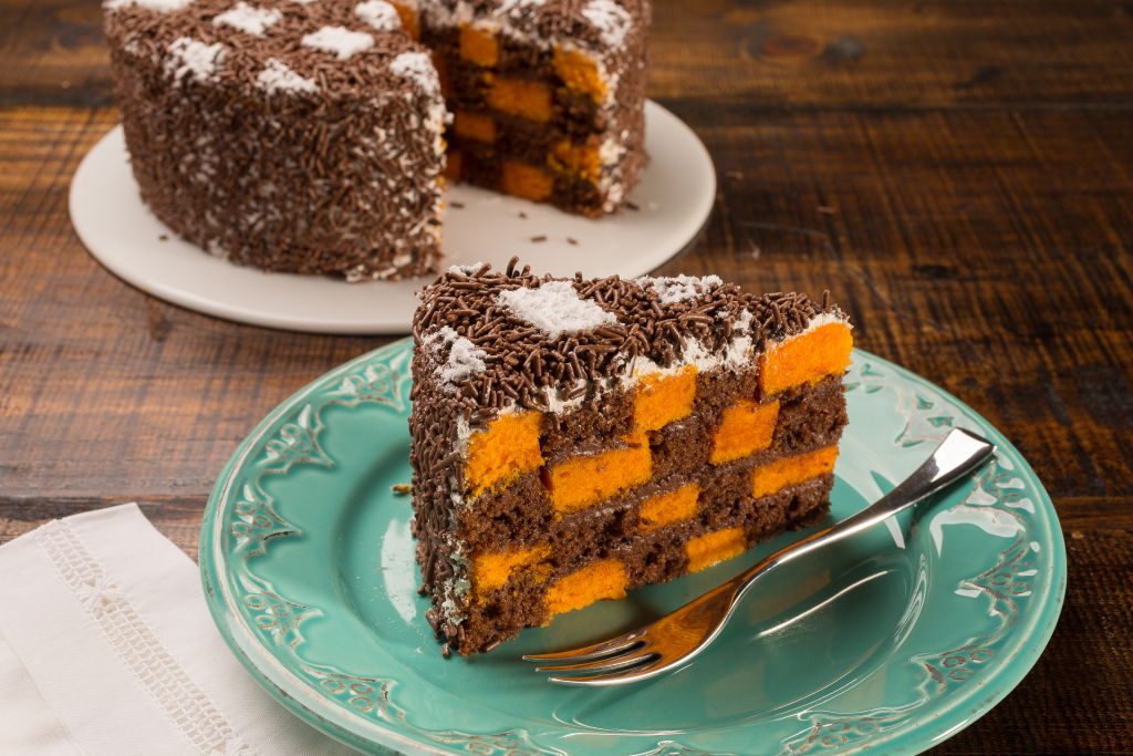 Corte o bolo de chocolate e o bolo de cenoura em círculos, monte intercalando fatias de bolo de chocolate e cenoura com o recheio de brigadeiro cremoso. Passe chantilly batido no bolo e decore com Granulado Macio e Açúcar Gelado.