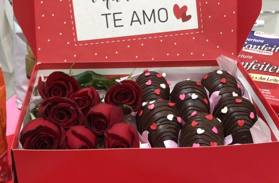 Banhar e Decorar: Dívida o brigadeiro em tamanhos desejados, pegue o morango e envolva com no brigadeiro, reserve. Em recipientes separados derreta a Cobertura Meio Amarga e a Branca em banho-maria ou micro-ondas e banhe os brigadeiros e decore com Confeito Figura Coração, deixe secar.