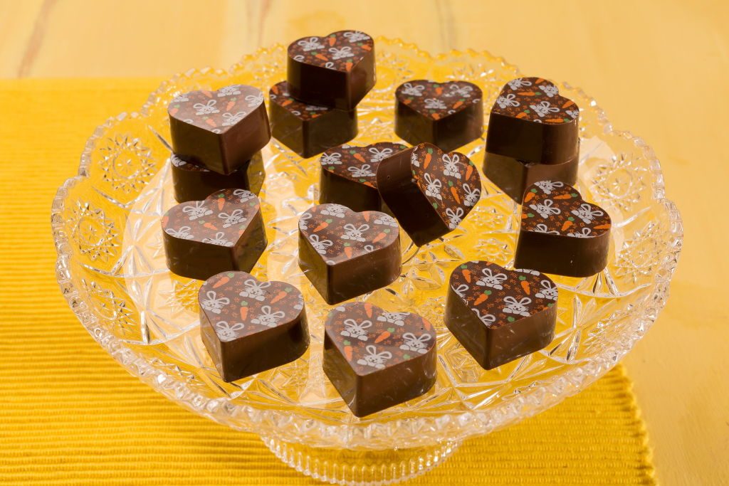 Casquinha: Em um recipiente derreta a Cobertura Meio Amarga em banho-maria ou micro-ondas. Reserve. Coloque um pedaço de folha de transfer com desenho de Páscoa em uma forma de bombom imantada e em seguida coloque a Cobertura Meio Amarga derretida até a borda, deixe por alguns segundos e vire a forma tirando o excesso de Cobertura. Se necessário repita o banho e leve à geladeira até ficar opaca. Retire e reserve.