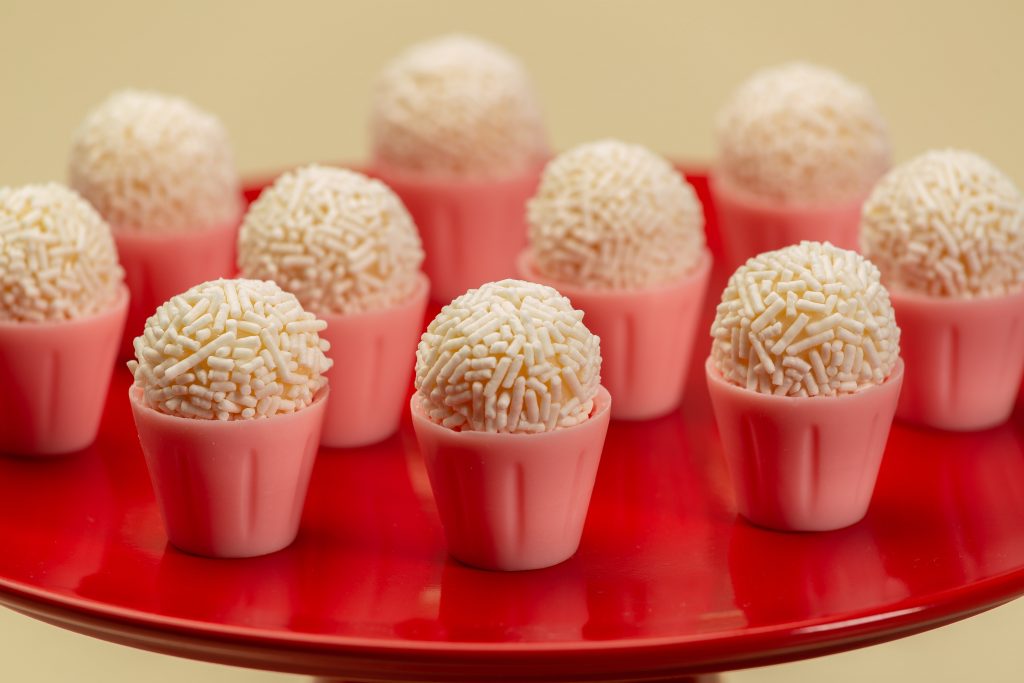 Brigadeiro: Em uma panela, coloque o leite condensado e o leite em pó, misture bem até dissolver. Em seguida, acrescente a manteiga sem sal, o creme de leite e a Cobertura Branca. Leve ao fogo mexendo sempre até ficar no ponto de enrolar. Depois de frio enrole, passe no Granulado Branco e reserve.