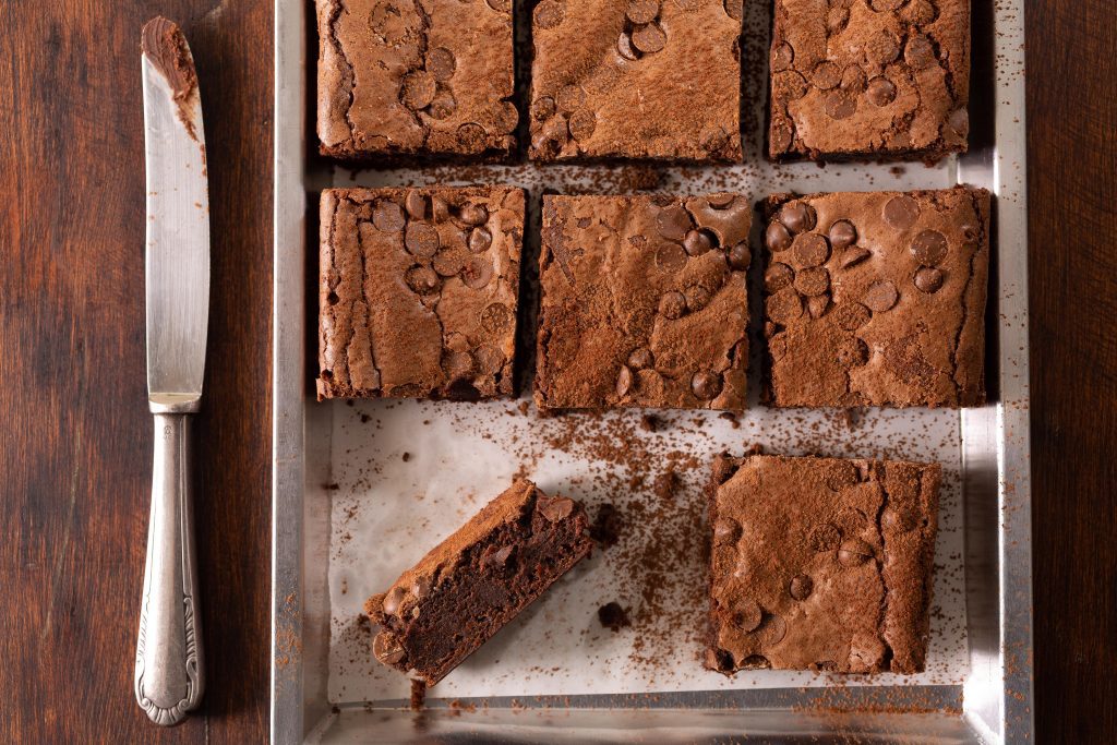 Em um recipiente derreta a Cobertura Meio Amarga junto com a manteiga em banho-maria ou micro-ondas. Acrescente o Chocolate em Pó, misture bem. Em seguida coloque os ovos, o açúcar refinado e o Aroma de Baunilha e mexa. Coloque a farinha de trigo misture e coloque a massa em uma assadeira untada e forrada com papel manteiga. Espalhe as Gotas de Chocolate e leve para assar no forno preaquecido a 180º C por aproximadamente 40 minutos.