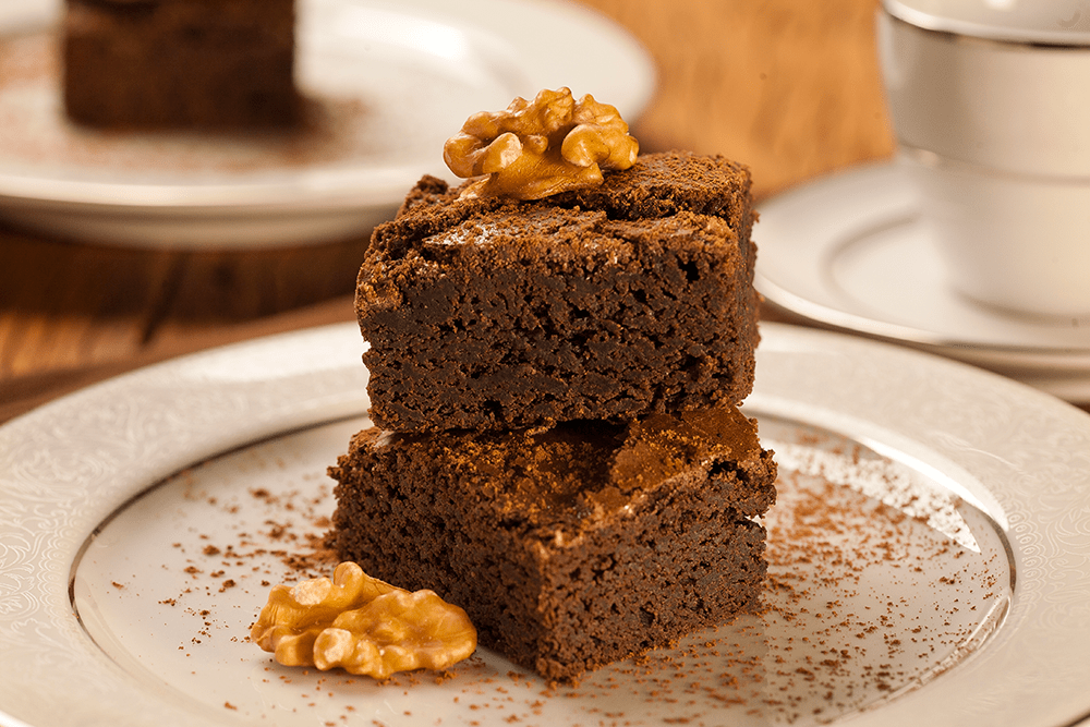 Depois de frio, corte em quadrados, polvilhe Cacau em Pó e coloque nozes.