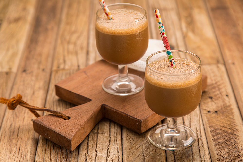 Bata no liquidificador, a água, o café solúvel, o Cacau em Pó, o açúcar, o conhaque, o creme de leite e o gelo. Distribua em copos.