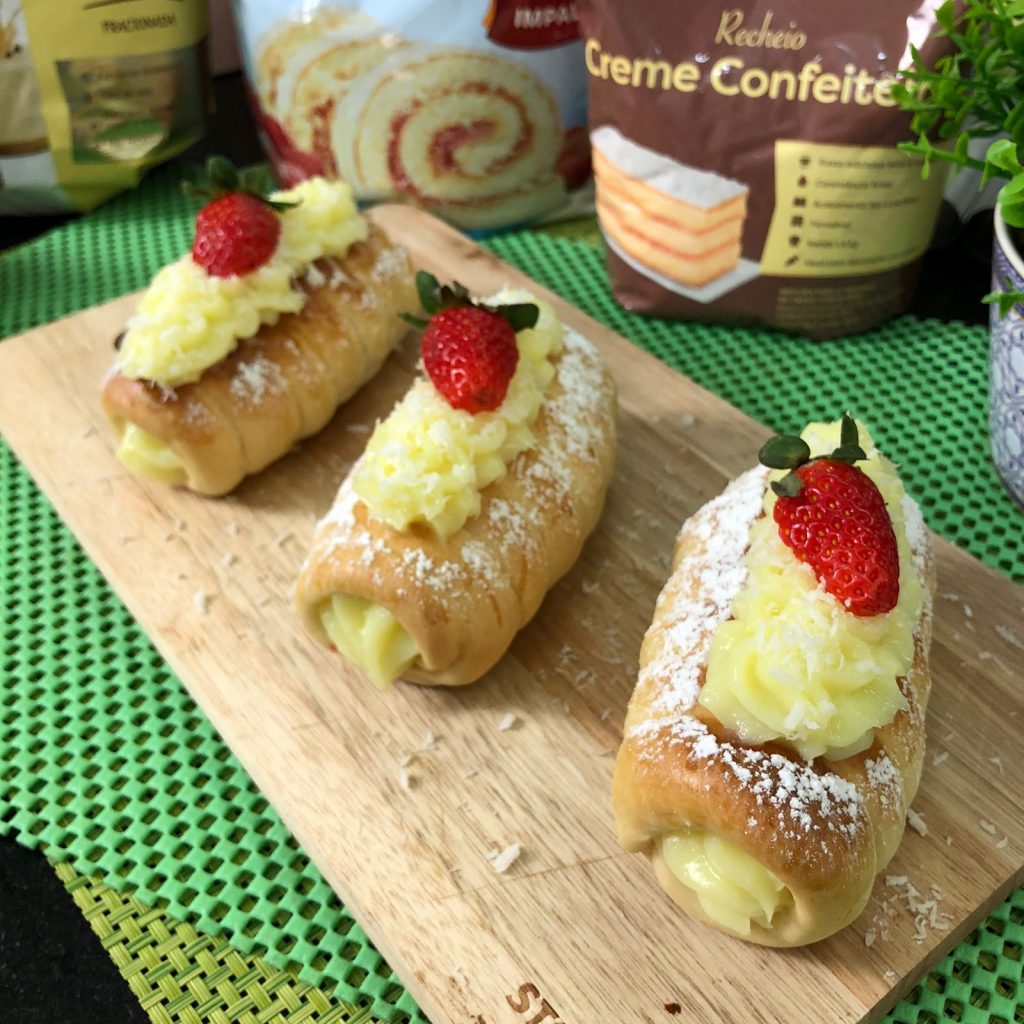Creme de Confeiteiro: Em uma panela, coloque o leite e leve ao fogo. Quando começar a ferver acrescente o Pó para Preparo de Creme de Confeiteiro, misture bem por 2 minutos, desligue. Deixe esfriar para rechear.
