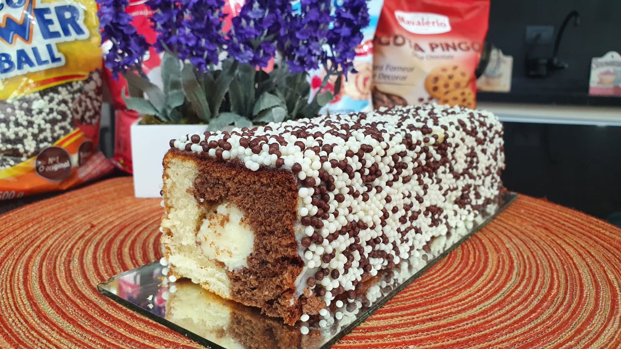 Massa do Bolo Mesclado: Bata na batedeira a margarina sem sal com Açúcar de Confeiteiro muito bem, junte os ovos e bata até formar um creme. Em seguida misture os restantes dos ingredientes até ficar homogêneo. Divida a massa e acrescente o Cacau em Pó, misture e coloque nas formas untadas e leve para assar por 25 minutos, após assado colocar o recheio branco.