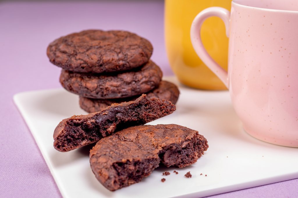 Na batedeira, bata a manteiga, o açúcar mascavo e o açúcar refinado até formar um creme. Em seguida, adicione os ovos e o Aroma de Baunilha. Bata por mais alguns segundos e reserve. Derreta a Cobertura Meio Amarga no micro-ondas ou em banho-maria e, aos poucos, despeje na batedeira até ficar homogêneo, desligue e, com o auxílio de uma espátula, adicione aos poucos a farinha de trigo, o Cacau em Pó, o Fermento em Pó e o sal e misture. Por último, adicione as Gotas de Chocolate e deixe descansar por 30 minutos na geladeira. Forre uma assadeira com papel-manteiga, faça bolinhas de aproximadamente 60 g e leve para assar em forno preaquecido em 180 °C, por 12 minutos, deixe esfriar.