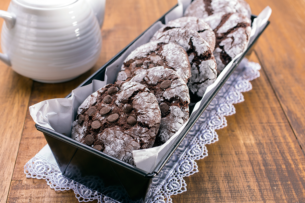 Em um recipiente, misture o açúcar, a farinha de trigo, a manteiga, o Cacau em Pó, o ovo, o Aroma de Baunilha e o fermento muito bem até formar uma massa. Acrescente as Gotas na massa e misture. Coloque a massa em um saquinho e leve à geladeira por 30 minutos, retire, modele bolinhas, passe no Açúcar de Confeiteiro, coloque em uma assadeira baixa e leve para assar no forno preaquecido a 180 °C por aproximadamente 10 minutos.