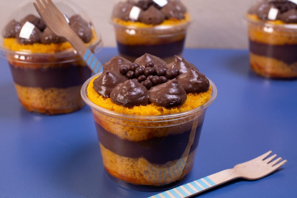 Coloque o recheio creme de chocolate em uma Manga de Confeitar e em copos de sua preferência, intercale camadas da massa e do recheio. Finalize com o creme e com o Choco Power Ball Mini no centro do recheio.