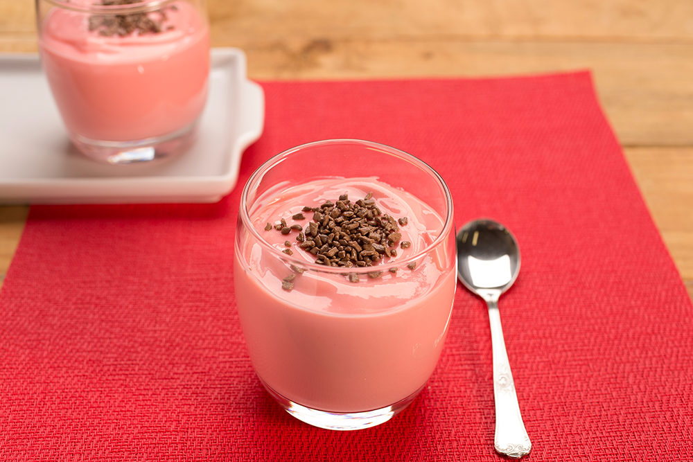 Bata na batedeira o leite condensado, o Pó de Morango, o iogurte natural e o champanhe até ficar um creme aerado. Coloque em copos e para finalizar decore com Flocos Crocantes.