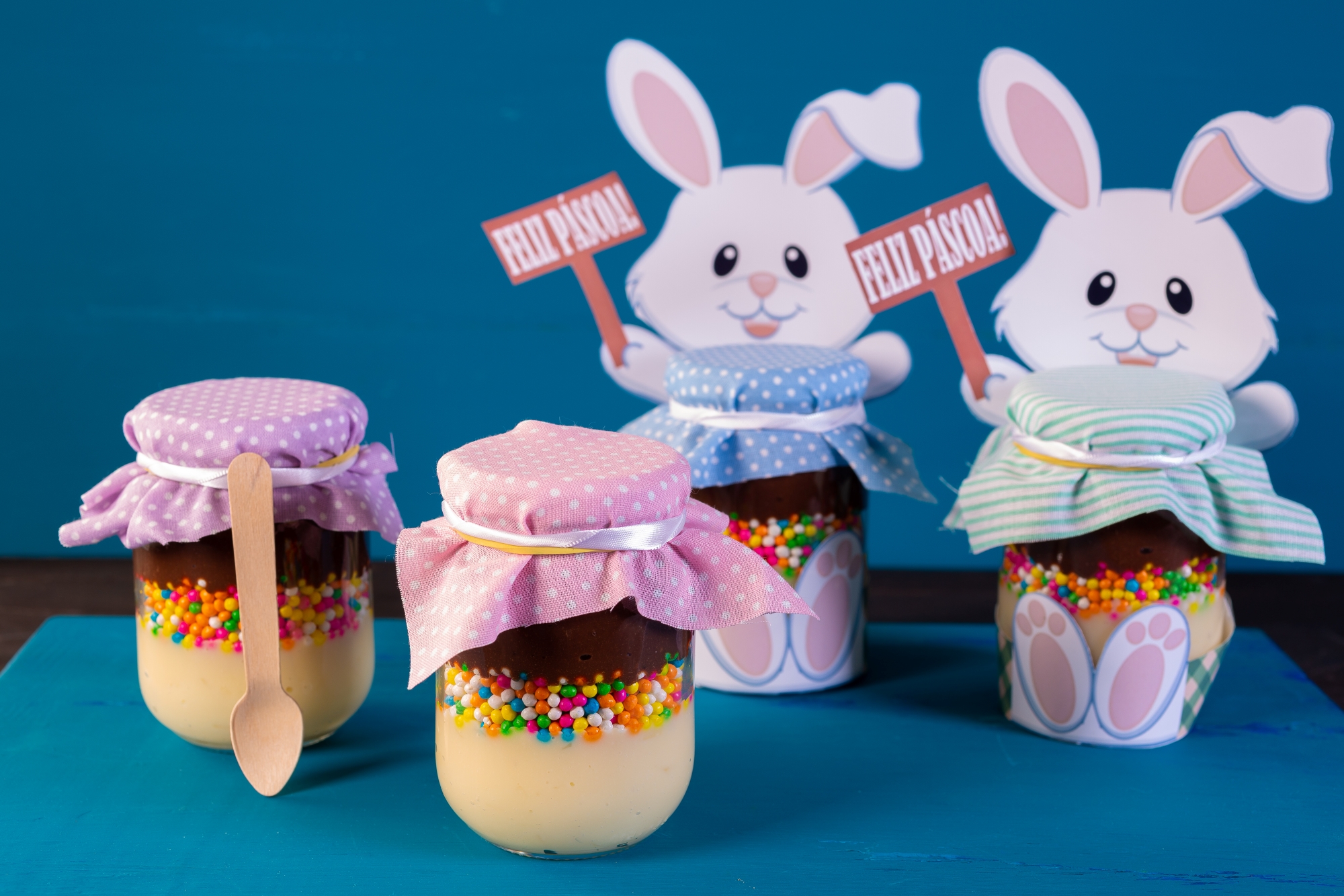 Em potes de sua preferência, intercale camadas da cocada, do Choco Power Ball Colorido e do brigadeiro.