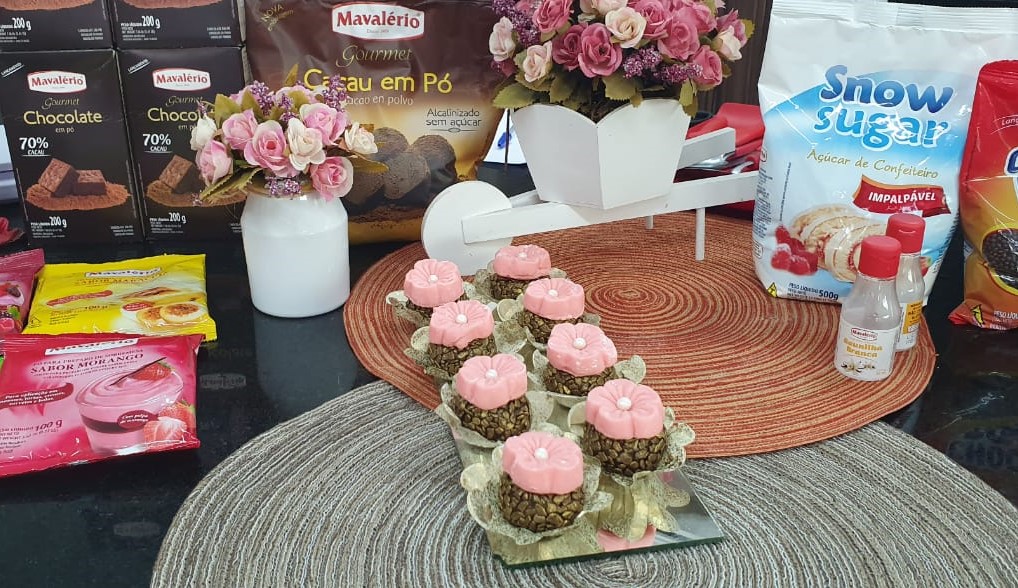Decore o brigadeiro com a flor.