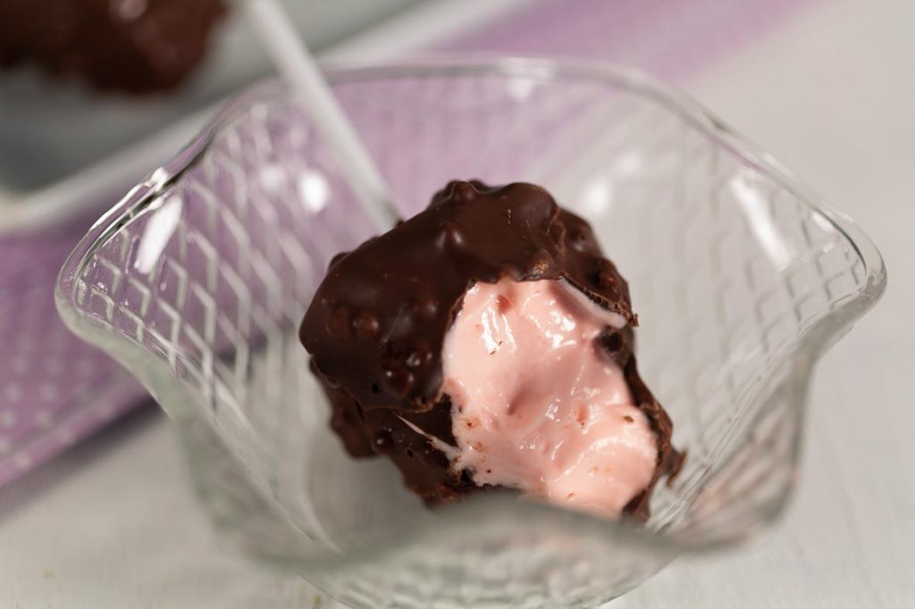 Para Banhar: Em um recipiente derreta a Cobertura Blend em banho-maria ou micro-ondas e acrescente o Flocos de Cereais, misture e reserve. Retire os copinhos do freezer, corte os potinhos e em seguida banhe na Cobertura reservada e deixe secar.
