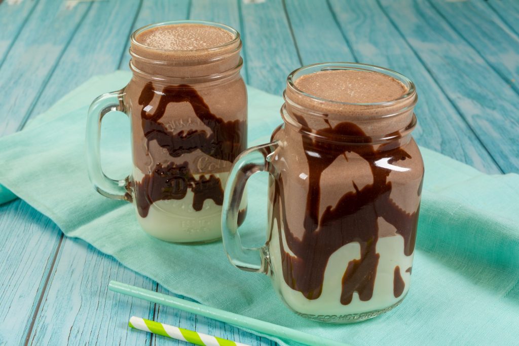 Creme de Chocolate: Em um recipiente, derreta a Cobertura Amarga em banho-maria ou micro-ondas, acrescente o creme de leite e misture bem. Em seguida, coloque no liquidificador, acrescente o chantilly gelado líquido, as pedras de gelo e bata por 3 minutos.