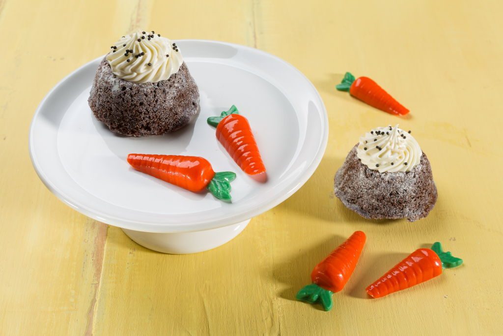 Massa: Bata na batedeira os ovos com o açúcar e a essência de caramelo até obter uma massa bem fofa e aerada. Reserve. Aqueça o leite com a manteiga e despeje sobre a massa e bata mais. Desligue e acrescente a farinha de trigo, o fermento em pó e o Cacau em Pó e misture delicadamente com o auxílio de um fuê. Distribua a massa em mini assadeira ballerine untada e leve para assar em forno preaquecido a 180 °C por aproximadamente 20 minutos.