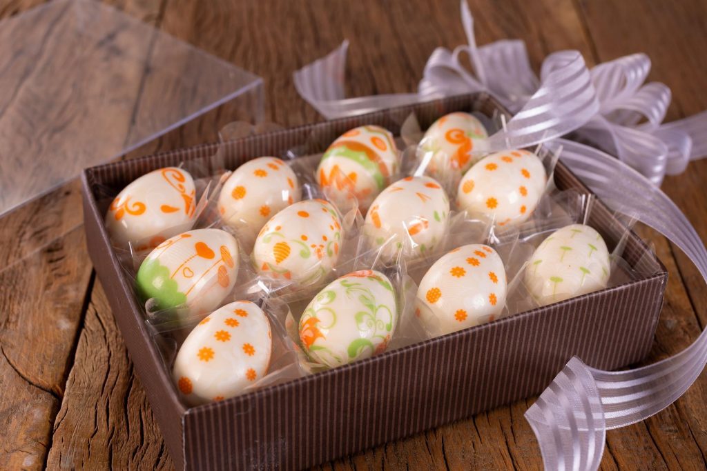Forminha de ovos com desenho em transfer