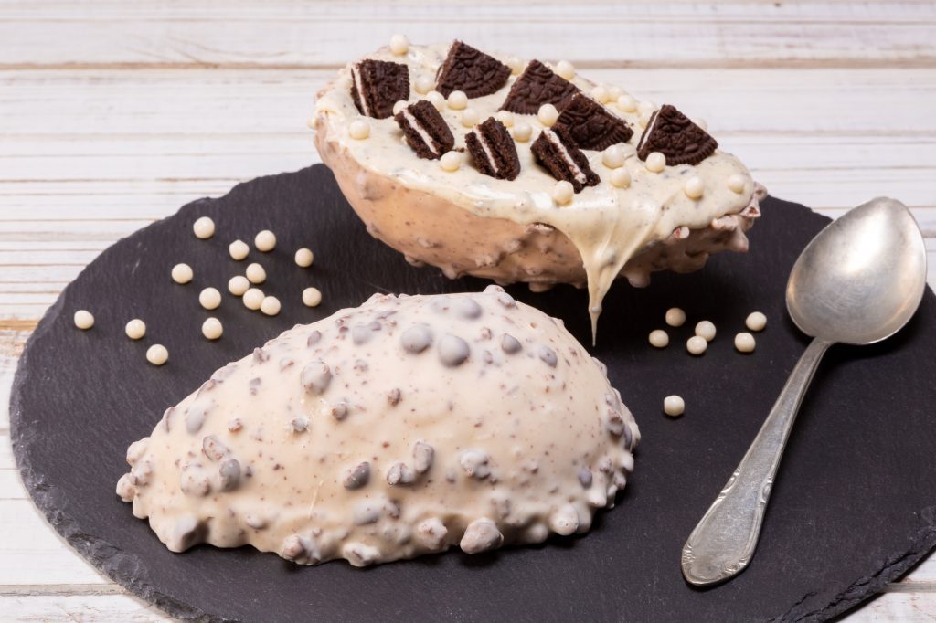 Montagem e Decoração: Recheie as cascas com o recheio trufado de leite em pó, reserve. Decore com pedaços de biscoitos cortados e Choco Power Ball Branco.