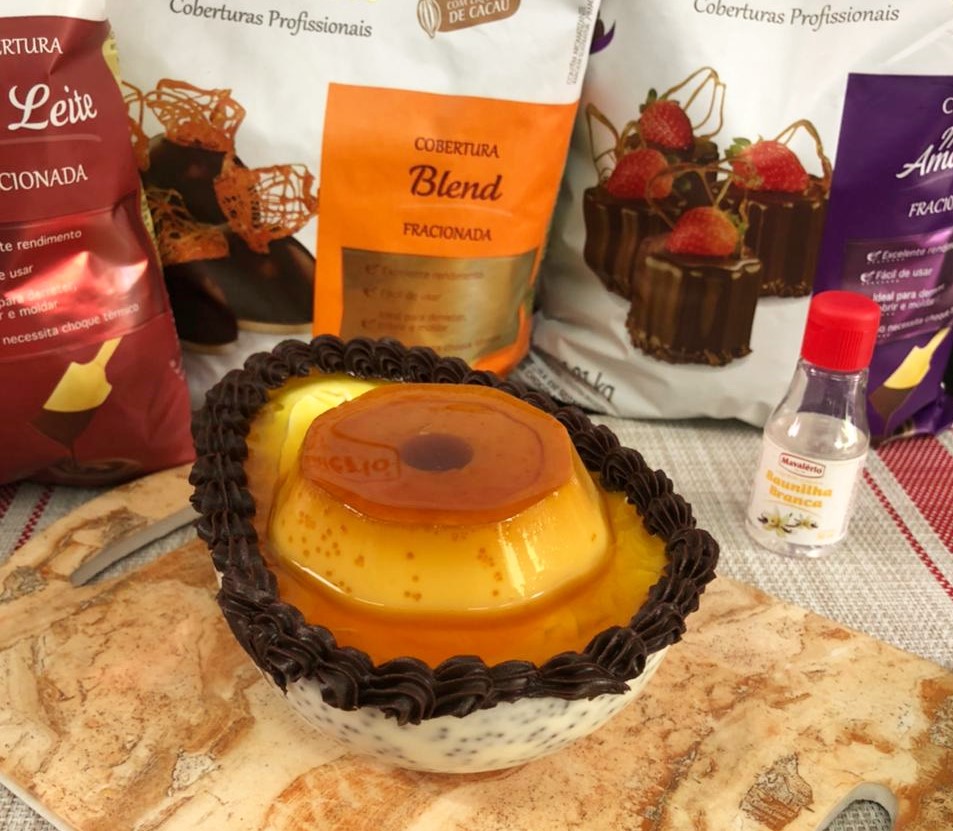 Creme de Baunilha: Coloque em um recipiente o leite condensado, o leite em pó, misture bem para dissolver. Em seguida coloque o Aroma de Baunilha, misture e o chantilly batido e mexa.