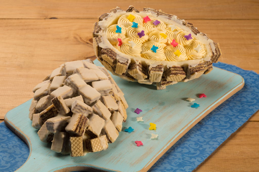Casca do Ovo: Em um recipiente derreta a Cobertura Branca em banho-maria ou micro-ondas. Coloque em formas de ovos de silicone seguindo as instruções do fabricante. Leve à geladeira até ficar opaca. Retire e reserve. Quebre o biscoito wafer e cole na casca do ovo com o restante da Cobertura derretida, em seguida espalhe a Cobertura sobre o biscoito.