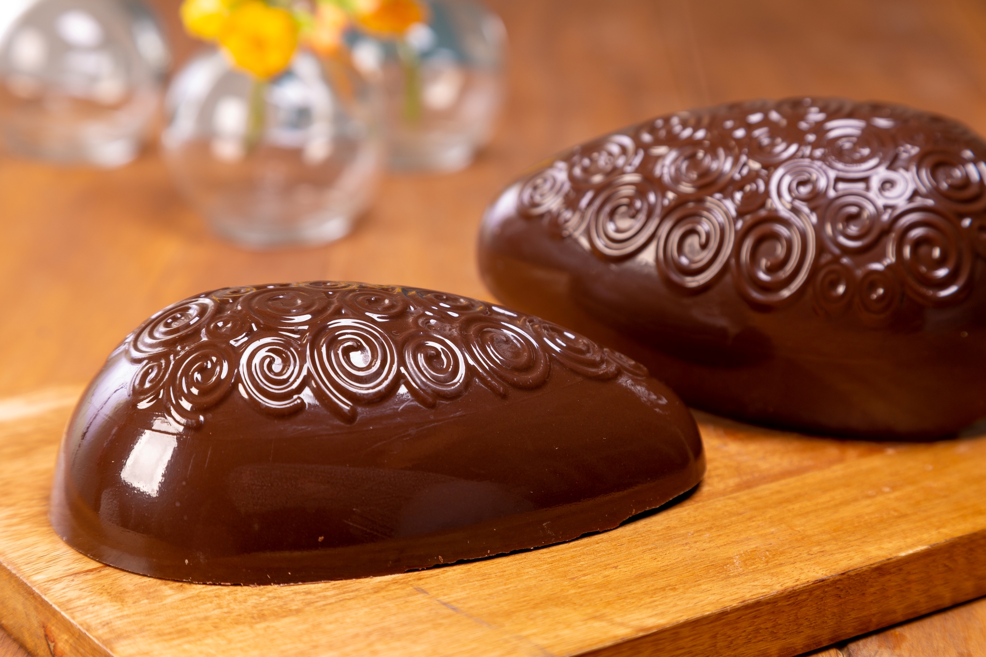 Casca: Em um recipiente, derreta a Cobertura Amarga em banho-maria ou micro-ondas. Preencha a forma de silicone no formato de ovo, seguindo as instruções do fabricante. Leve à geladeira até ficar opaca. Retire, desenforme e reserve.