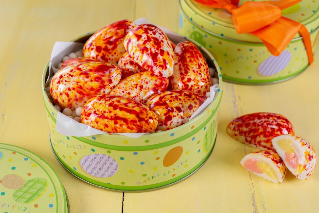 Montagem: Recheie as casquinhas dos ovinhos com o recheio de morango e com o recheio de maracujá e feche com a Cobertura derretida.