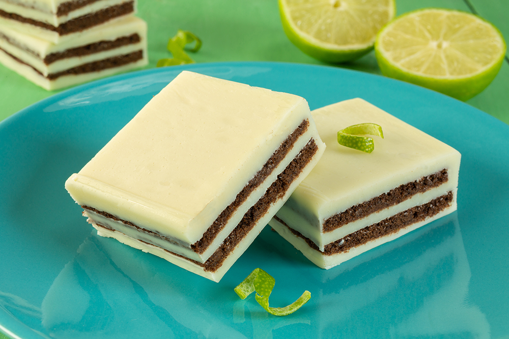 Forre uma assadeira baixa com plástico filme, intercale camadas do creme de limão e da placa de chocolate. Leve à geladeira até ficar consistente, em seguida, retire e corte no tamanho desejado.