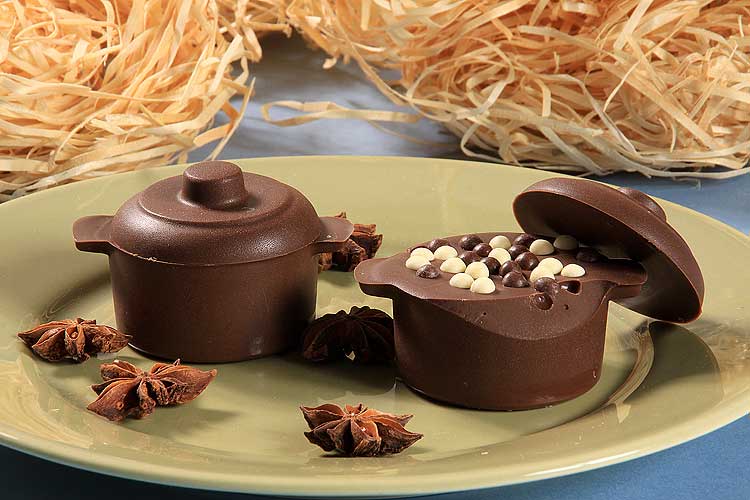 Derreta a Cobertura ao Leite em banho-maria ou no micro-ondas. Coloque em forminhas próprias com formato de panela e leve à geladeira. Retire quando estiver esbranquiçada e aplique uma porção do recheio e outra do Choco Power Ball. Coloque a tampa da panela por cima, deixando aparecer o recheio.