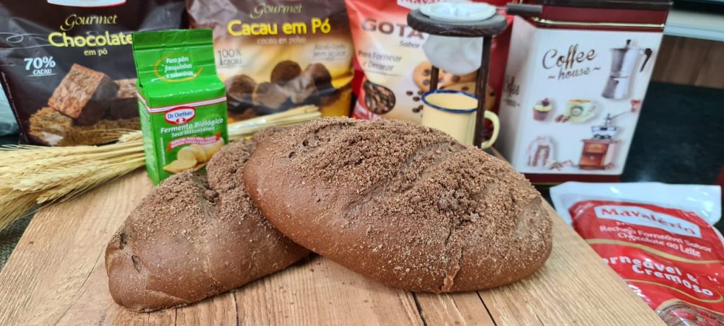 Farofa: Em um recipiente, coloque a farinha de trigo, o açúcar refinado, a margarina sem sal, o Cacau em Pó e misture bem. Em seguida, espalhe a farofa no pão e leve para assar em forno preaquecido a 180 °C por aproximadamente 25 minutos.