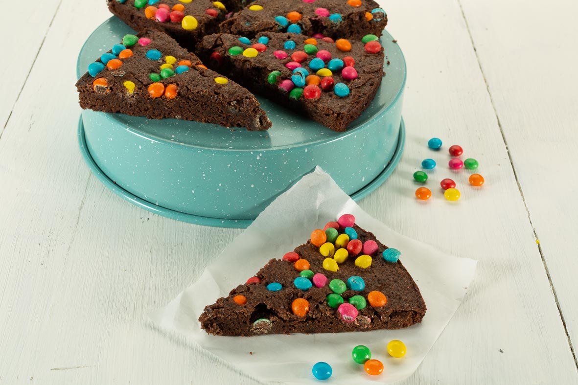 Brownie: Em um recipiente, derreta a Cobertura Meio Amarga e a margarina em banho-maria ou micro-ondas. Acrescente o Cacau em Pó, os ovos, o açúcar refinado, o Aroma de Baunilha, a farinha de trigo e misture bem. Distribua a massa em uma assadeira baixa e espalhe Chocogiros por toda massa. Leve para assar em forno preaquecido a 180 °C por aproximadamente 25 minutos.