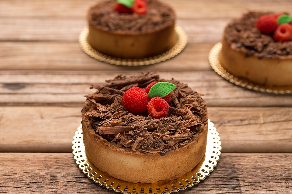 180 °C até que fique firme. Decore com raspas de Cobertura Sabor Chocolate Meio Amargo e framboesas.