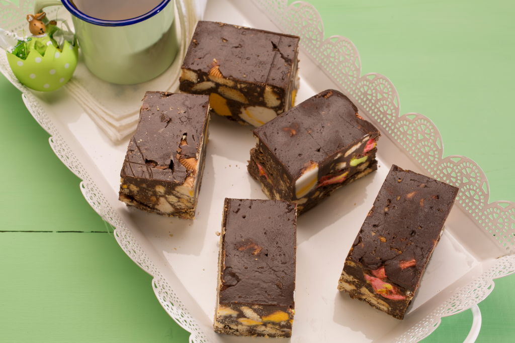 Em um recipiente derreta a Cobertura Meio Amarga em banho-maria ou micro-ondas. Acrescente a manteiga e o leite condensado e misture bem até obter uma pasta. Acrescente o marshmallow picado e mexa. Coloque em uma forma forrada com filme plástico e leve à geladeira até endurecer. Retire e corte em cubinhos.