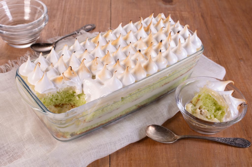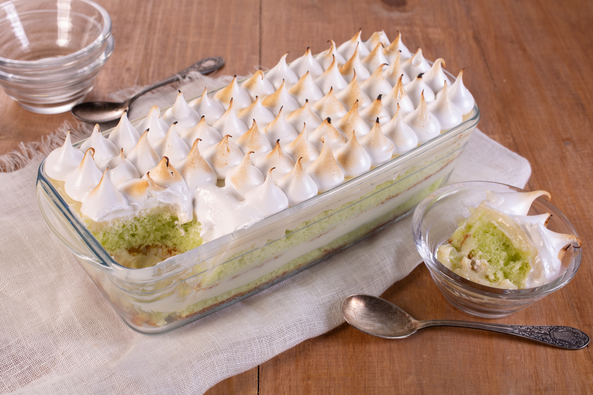 Marshmallow e Montagem: Em um recipiente, misture o Pó para Glacê Real, a clara e em seguida, aqueça em banho-maria ou micro-ondas, misturando até a clara perder a viscosidade. Coloque na vasilha da batedeira, acrescente o Pó de Limão e bata até montar. Em uma travessa de sua preferência intercale camadas da massa e do creme de limão. Em seguida, coloque o marshmallow em uma Manga de Confeitar com Bico 2A e decore. Finalize passando o maçarico.