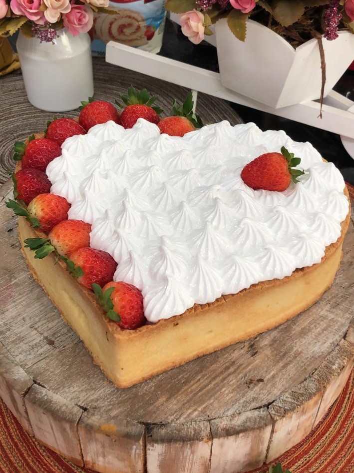 Base: Em um recipiente misture todos os ingredientes até que fique homogêneo. Coloque em um saco plástico, leve à geladeira por aproximadamente 30 minutos. Abra a massa entre dois plásticos, com o auxílio de um rolo. Molde em uma assadeira de coração, faça alguns furos com o auxílio de um garfo ou faca e leve para assar em forno preaquecido 180 °C por aproximadamente 25 minutos ou até esteja dourada.