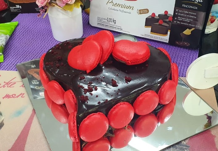 Massa Red Velvet: Na batedeira, bata muito bem, os ovos e o açúcar refinado. Em seguida, peneire todos os ingredientes secos em um recipiente, reserve. Derreta a manteiga sem sal e acrescente a água, o iogurte natural, o corante vermelho e o suco do limão e vá intercalando essa mistura aos ovos e a parte seca. Coloque a massa em assadeiras untadas e leve para assar em forno preaquecido a 150 °C, por aproximadamente 30 minutos.