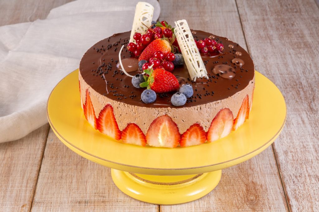 Montagem: Passe desmoldante ou óleo em um aro de 20 cm de diâmetro, coloque os morangos e intercale camadas de mousse e de base, finalizando com o mousse. Leve à geladeira até ficar firme.