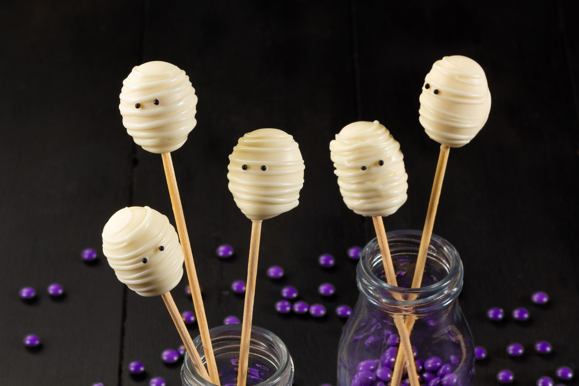 Para Banhar e Decorar: Em um recipiente, derreta Cobertura Branca em banho-maria ou micro-ondas, reserve. Modele a trufa em formato oval, passe o palito de madeira na Cobertura derretida, espete na trufa e deixe secar. Em seguida, banhe as trufas na Cobertura derretida reservada e deixe secar sobre um papel-manteiga. Coloque a Cobertura derretida em uma manga de confeitar, faça risquinhos e finalize, colando Confeito Miçanga Preta com a Cobertura derretida, para o detalhe dos olhos.