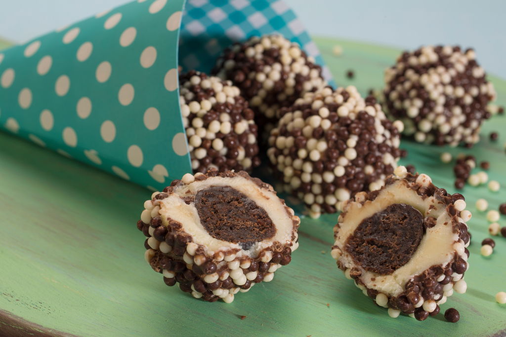 Em um recipiente, derreta a Cobertura Meio Amarga em banho-maria ou micro-ondas. Reserve. Depois do Brownie frio, corte cubinhos e reserve. Abra a trufa na mão e recheie com o pedaço de Brownie e enrole. Banhe na Cobertura derretida e passe no Choco Power Ball.
